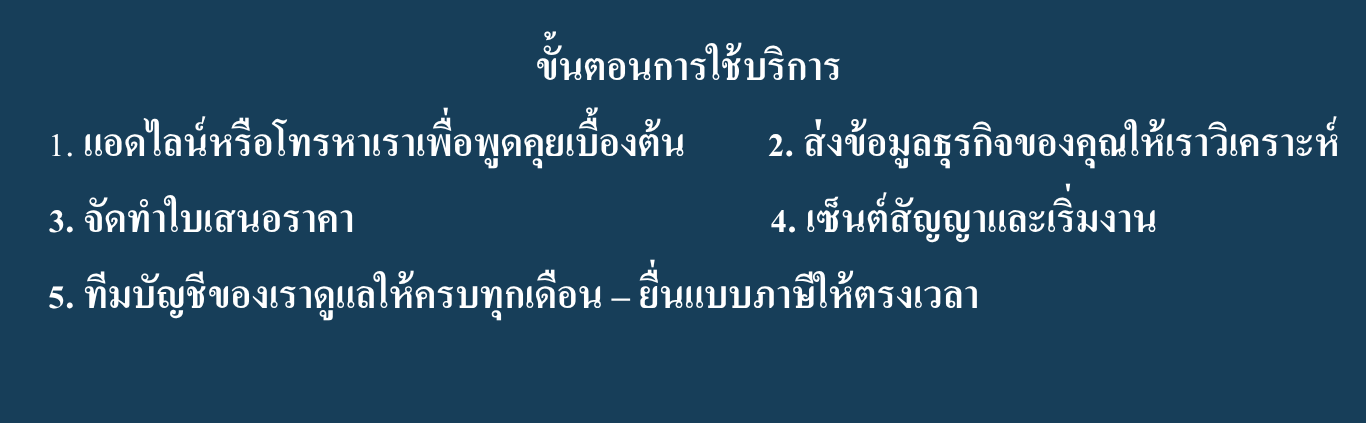 เรามีการวางระบบบัญชีให้กับลูกค้าเพื่อให้จัดทำบัญชีได้อย่างเป็นขั้นตอนและถูกต้อง
