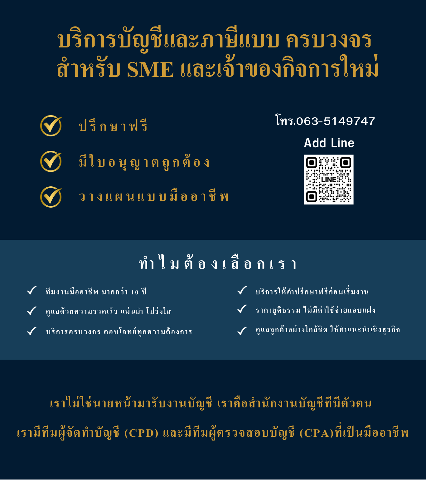เรามีทีมตรวจสอบบัญชี (CPA) ที่มีประสบการณ์ ตรวจสอบตามมาตรฐานการสอบบัญชี